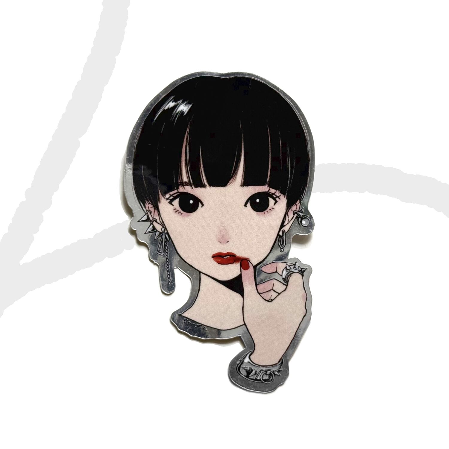 ロックテイストのシルバーアクセサリーを身に纏った女の子のメタリックステッカーです。